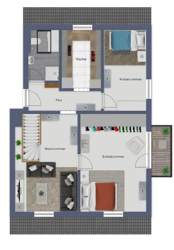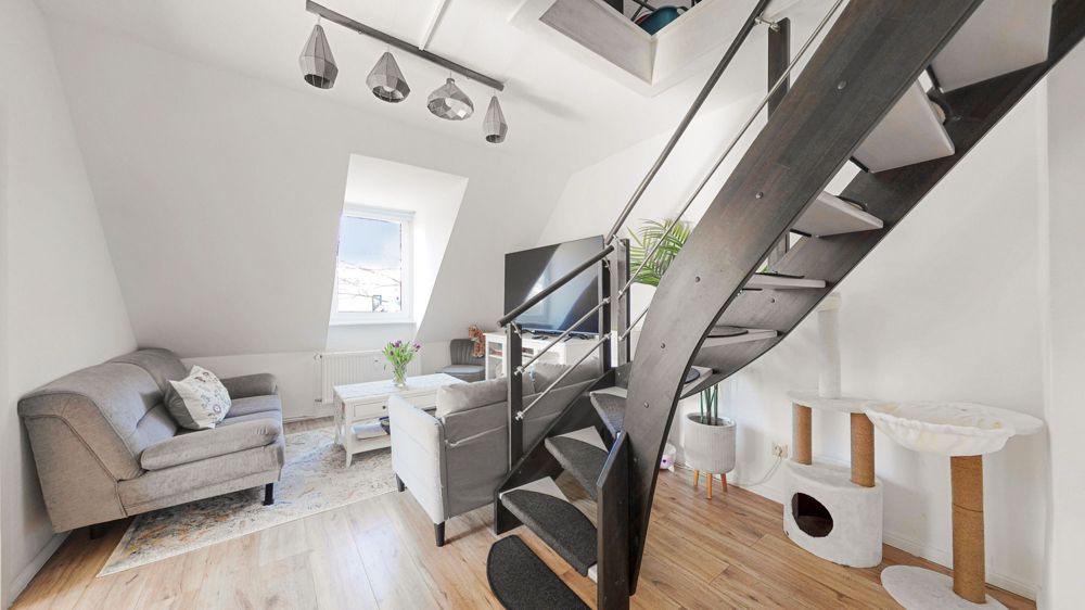 3,5 Zimmer Maisonette im Dachgeschoss mit Südbalkon, ausgebautem Spitzboden und neuem Bad